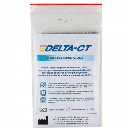 AKSIAT индикаторные полоски для экспресс-контроля концентраций рабочих растворов средства дезинфицирующего универсального с моющим эффектом, 100 шт/упак