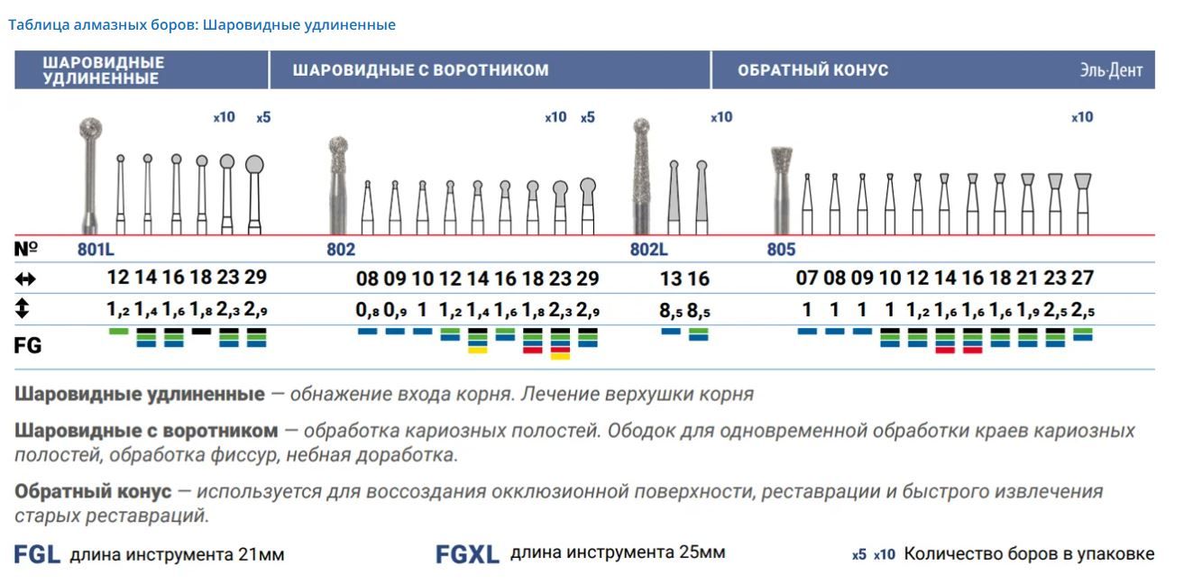 Боры окодент Таблица алмазных боров: Почковидные/Олива