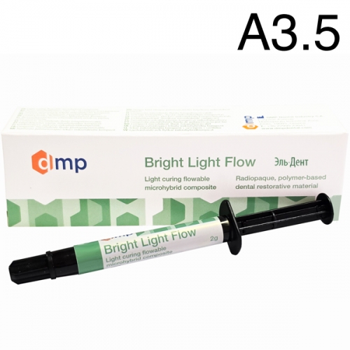 Bright Light Flow A3.5 (Брайт Лайт флоу) - текучий микрогибридный композитный реставрационный материал. Средний уровень текучести, тиксотропность обеспечивают удобство, точность и простоту применения.