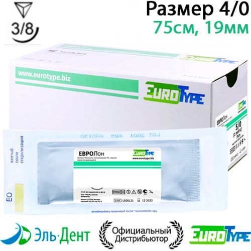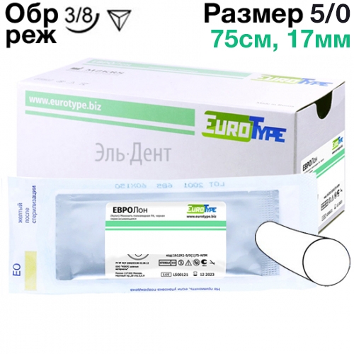 ЕвроЛон 5/0, 75см, 17мм, обр.реж.3/8, 12шт.-синтетический монофиламентный нерассасывающийся шовный материал из полиамида