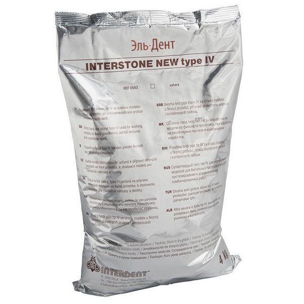 Гипс Interstone New (Интерстоун нью), 4 класса, песочный, алу-пакет, 4 кг, 1шт. /INTERDENT