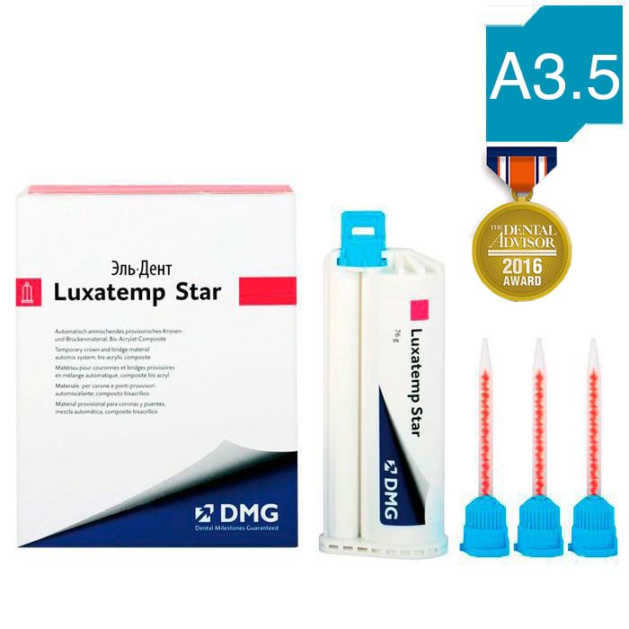 На протяжении многих лет название Luxatemp во всем мире ассоциируется с временными коронками и мостовидными протезами с высокой точностью посадки. С Luxatemp Star компании DMG удалось улучшить лучшее*! Luxatemp Star характеризуется высочайшими показателями прочности на изгиб и сопротивления излому, делая временные конструкции еще более устойчивыми, чем ранее. Теперь, если вдруг захочется отведать яблока в карамельной глазури, это больше не будет испытанием на прочность ни для материала, ни для отношений между стоматологом и пациентом. И конечно, долговечные конструкции должны надолго сохранять отличный внешний вид. Необычайная долговременная стабильность цвета материала Luxatemp Star - гарантия, которой можно доверять. Дополнительное преимущество в практическом применении: материал еще быстрее достигает своей конечной твердости.