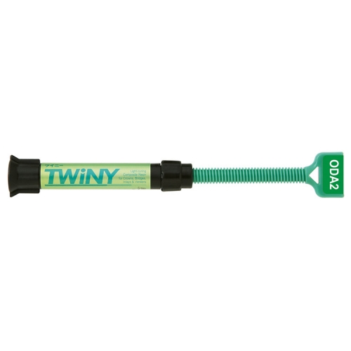 TWiNY Opaque Dentine композит опак-дентин, цвет ODA2, 2,6 мл, материал для перекрытия слоя опака при ограниченной толщине дентинового слоя, для нанесения и получения более глубокого последующего цвета тонко нанести на опак если остается 0.5 мм, совпадает с базовыми цветовыми оттенками. Используется для создания базового цвета в случаях, когда недостаточно места для нанесения Дентина, например у резцов.