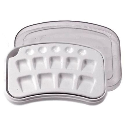 Song Young палитра для работы и хранения керамики, 14 ячеек: 9 прямоугольных и 5 круглых. Закрывается пластиковой прозрачной крышкой.
