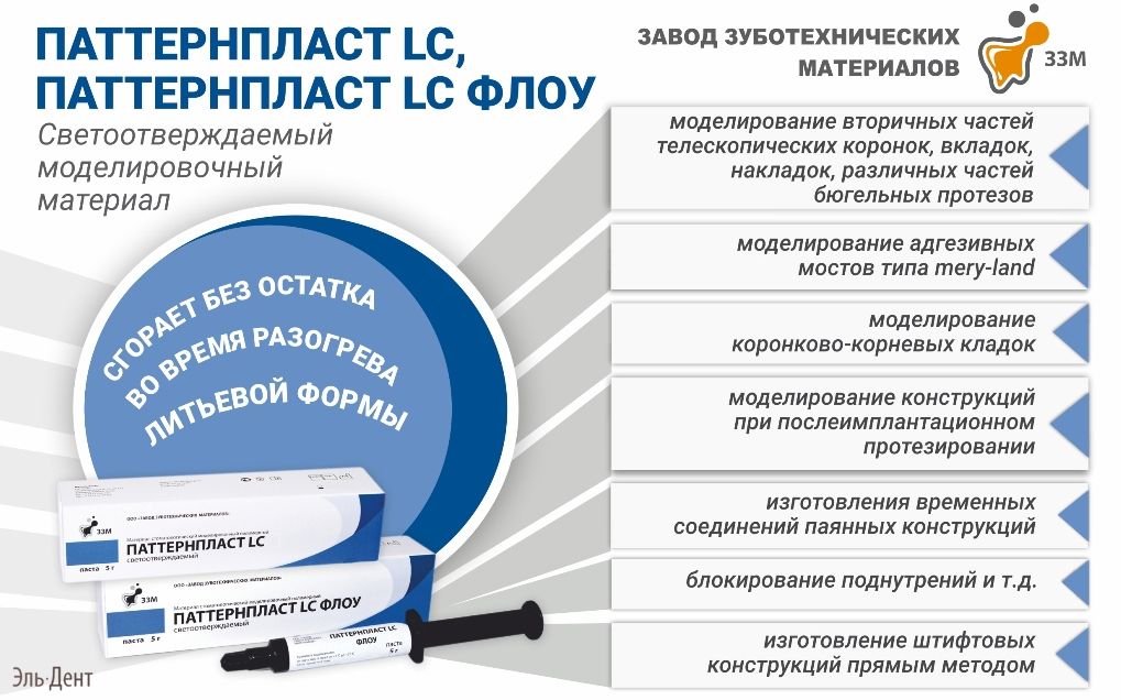ПАТТЕРНПЛАСТ–LC флоу - это материал стоматологический моделировочный полимерный.