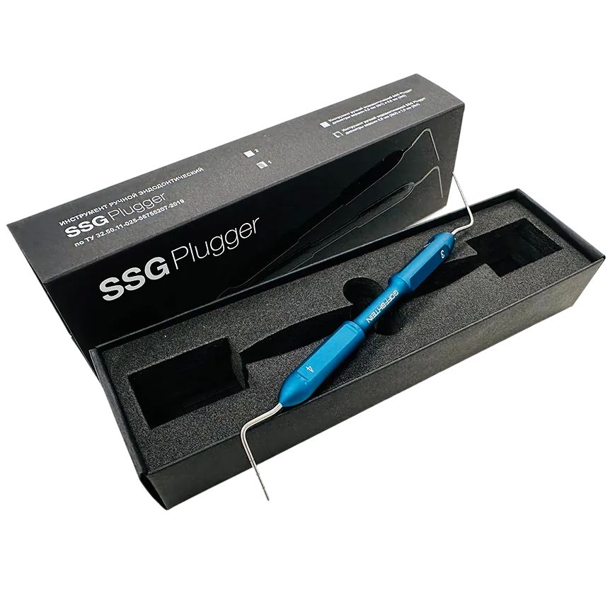 SSG Plugger - ручной эндодонтический инструмент, предназначенный для пломбирования корневых каналов методом вертикальной и латеральной компакции (уплотнения) разогретой гуттаперчи в корневом канале.