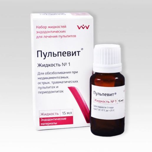 Пульпевит №1 (15 мл) - это эндодонтическая жидкость для лечения пульпитов.