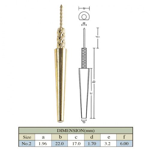 Dowel Pin №2 штифты латунные с иглой, для разборной модели. На одной из сторон конусной части штифта имеется плоский срез. В упаковке 100 шт.