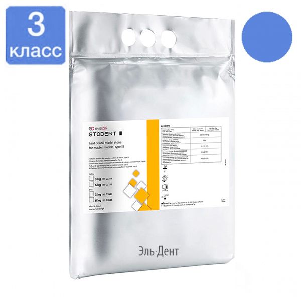 Stodent 3 (Стодент) - это гипс для моделей 3-го класса синий 3 кг, предназначен для антагонистических и рабочих моделей при изготовлении съемных и бюгельных протезов