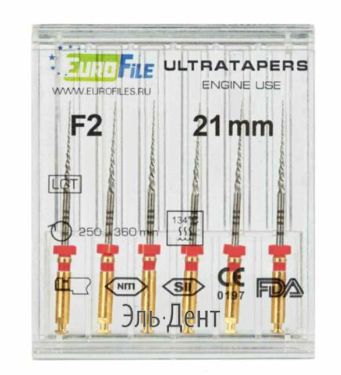 Описание: Ultratapers Engine Use F2, 21мм, машинные файлы, никель-титан, (6шт.).Eurofile