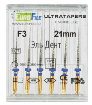 Описание: Ultratapers Engine Use F3, 21мм, машинные файлы, никель-титан, (6шт.).Eurofile