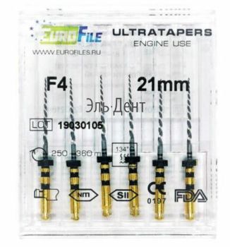 Ultratapers Engine Use F4, 21мм, машинные файлы, никель-титан, (6шт.).Eurofile