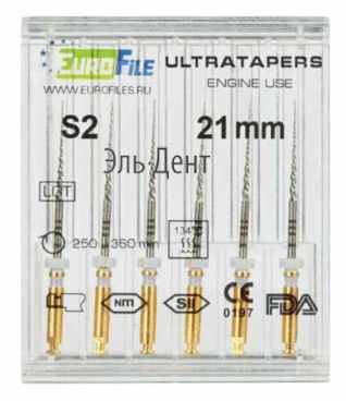 Описание: Ultratapers Engine Use S2, 21мм, машинные файлы, никель-титан, (6шт.).Eurofile