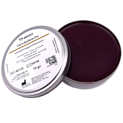 Пришеечный воск BEGO, предназначенный для моделирования пришеечных краев коронок цвета баклажан, является менее эластичным воском, к которому предъявляются особо высокие требования относительно обработки.