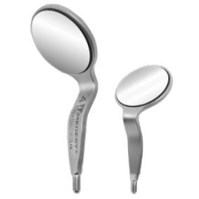 Зеркала стоматологические многократного использования Medesy в стальном корпусе с односторонней стеклянной плоской отражающей поверхностью.